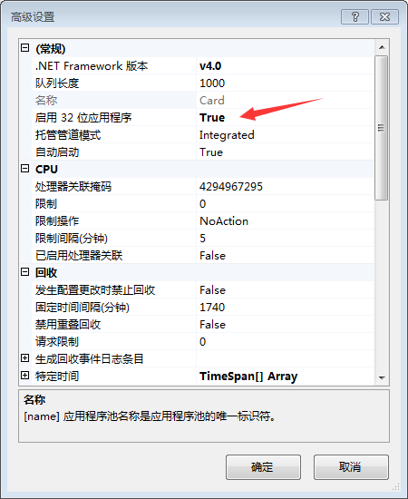 2.IIS程序池选择4.0集成(32位)。