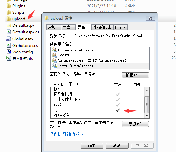6./upload文件夹开启写权限。