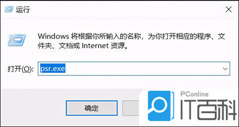 1、按下 【win+R】 快捷键,在运行对话框内输入“ psr.exe ”后点击确定。