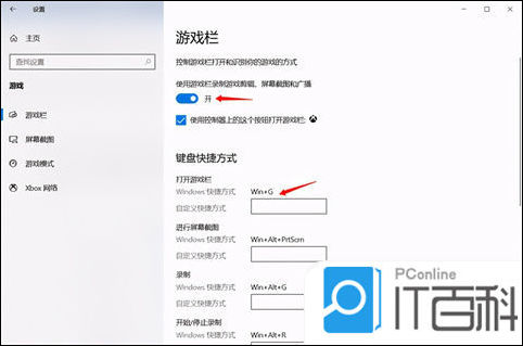 3、打开游戏栏中“ 使用游戏栏录制游戏剪辑、屏幕截图和广播 ”,快捷键设置为 Win+G 即可。