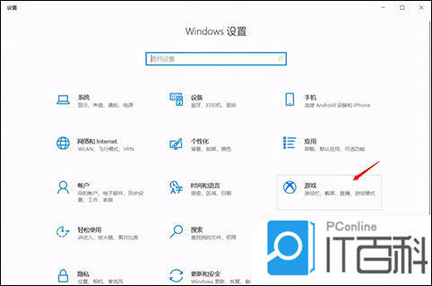 2、打开win10系统设置后,点击 游戏 选项。