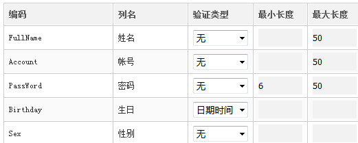 (1).编码 数据表字段名,可修改数据表字段名。