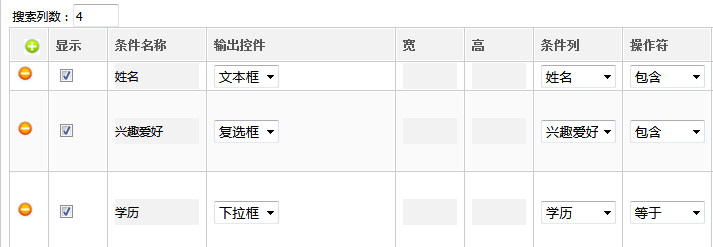 (1).显示 搜索条件是否显示。如设置成不显示,只要按照相关规则传参数,该条件同样有用。