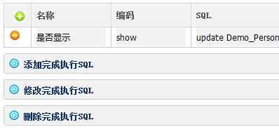 7.动作 设置快捷操作动作(如:数据显示隐藏),模块添加、修改、删除等动作完成后,补充执行SQL语句。