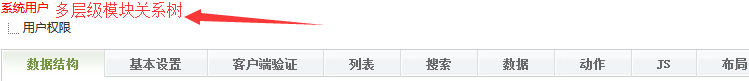 模块权限 JSON格式text为权限名称,value为操作权限 [{“text”:“列表”,"value":"list"},{"text":"详细","value":"view"},{"text":"添加","value":"add"},{"text":"编辑","value":"edit"},{"text":"删除","value":"del"}]