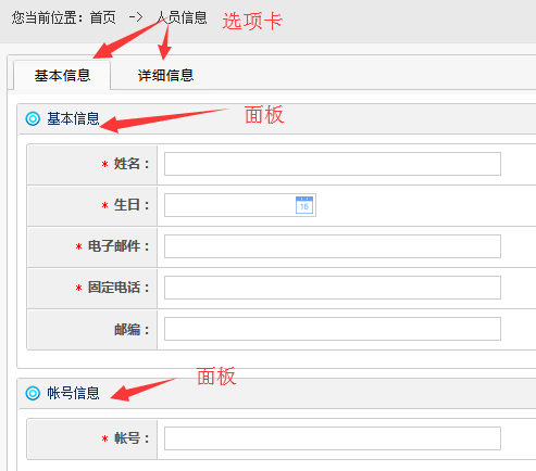 (2).面板 为表单添加面板,面板可以在选项卡内外。