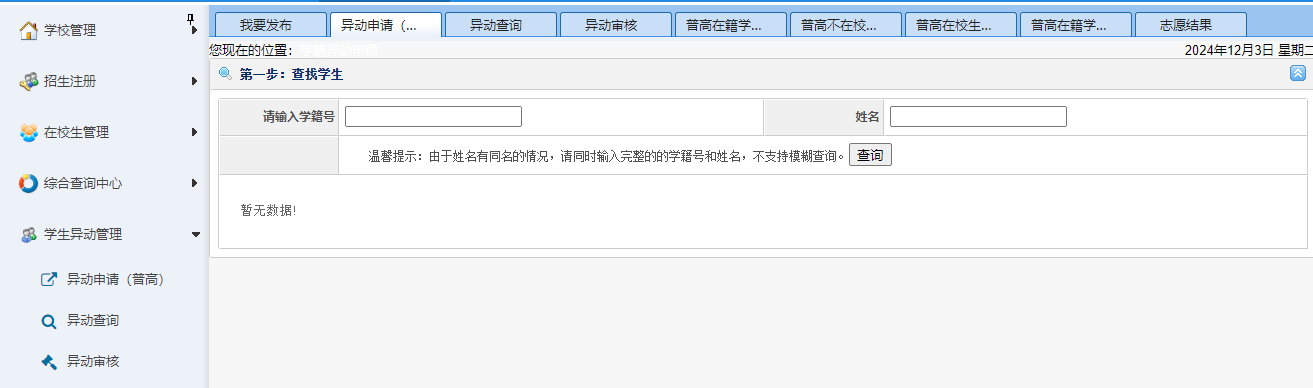 中小学籍管理系统,适合普通高中,职业高中,也可适用于培训机构,从招生入学,在校管理,成绩管理、毕业管理,学生终身电子档案,功能可制定,可本地布署,也可以远程布置,欢迎体验。