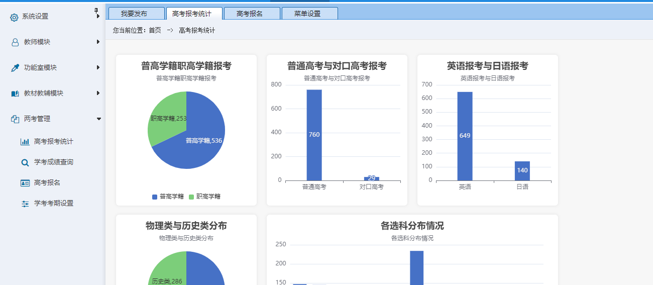 统计图表功能是教务主任,教学校长作工作总结和工作汇报的最佳选择,支持个性化开发。